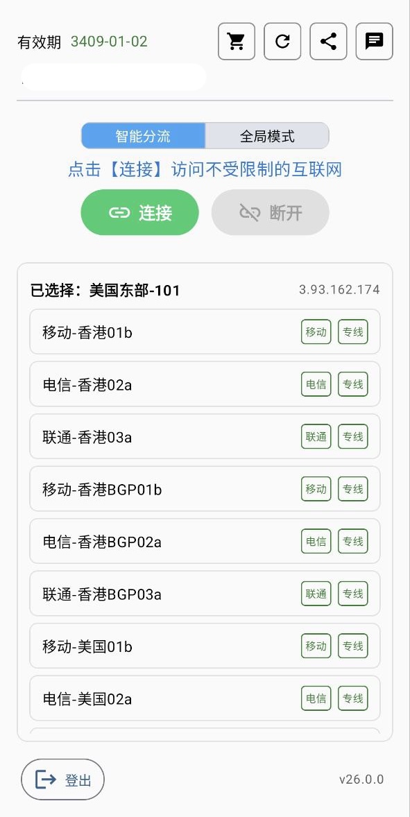 安装应用后,打开应用,登录梯子Z账号密码,即可使用